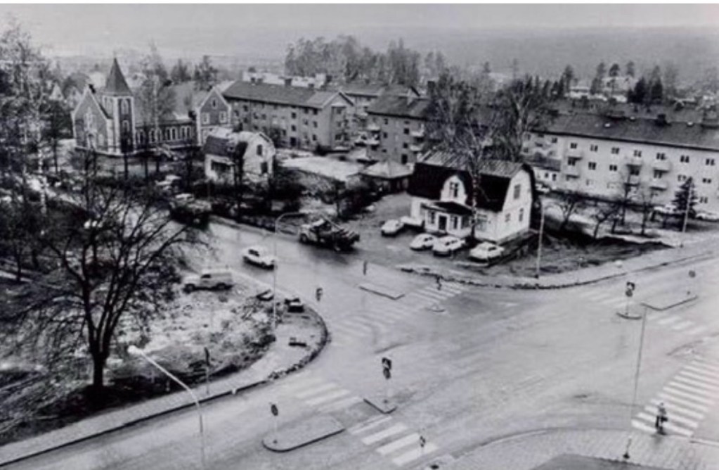 En flygbild på Fagersta centrum då bruket stod på topp och brukshotellet var en självklar mötesplats för affärsuppgörelser och nöjeslystna Fagerstabor.