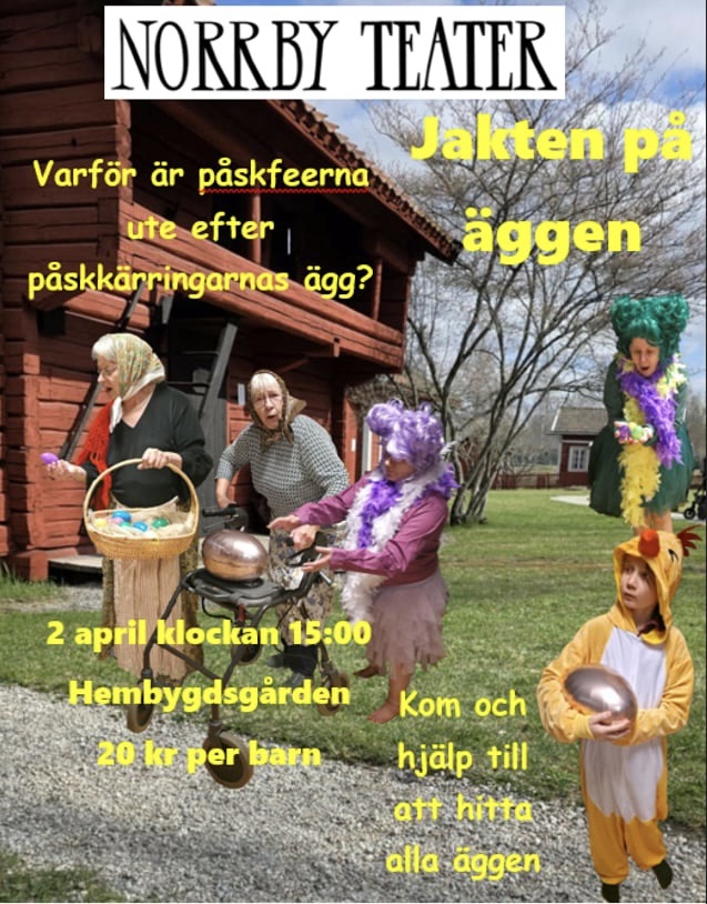 Norrby teater spelar pjäsen på hembygdsgården på skärtorsdagen. Deras föreställningar brukar vara väldigt omtyckta inslag påskfirandet. Rollistan består av Gunlis Gäfvert Andersson, Gun Alvarsson, Louisa Eriksson, Carina Fredriksson, Hannes Ström, samt Helena Nygårds.