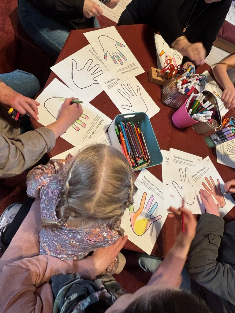 Efter visa ord från prästen Lars Frisk fick kreativiteten flöda bland publiken i form av skapandet av en gemensam tavla. En tavla där samtliga målade händer fick ge form av ett stort hjärta. En symbol för hopp och kärlek.