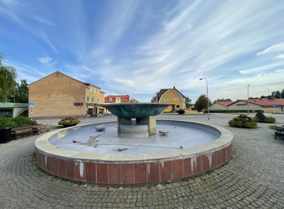 Nu har vattenröret plockats bort för vinterförvaring. Vad som ska hända med fontänen är osäkert. Många har saknat den i sommar, inte minst barnfamiljer eftersom den även är en lekplats som besökare brukar fotografera.