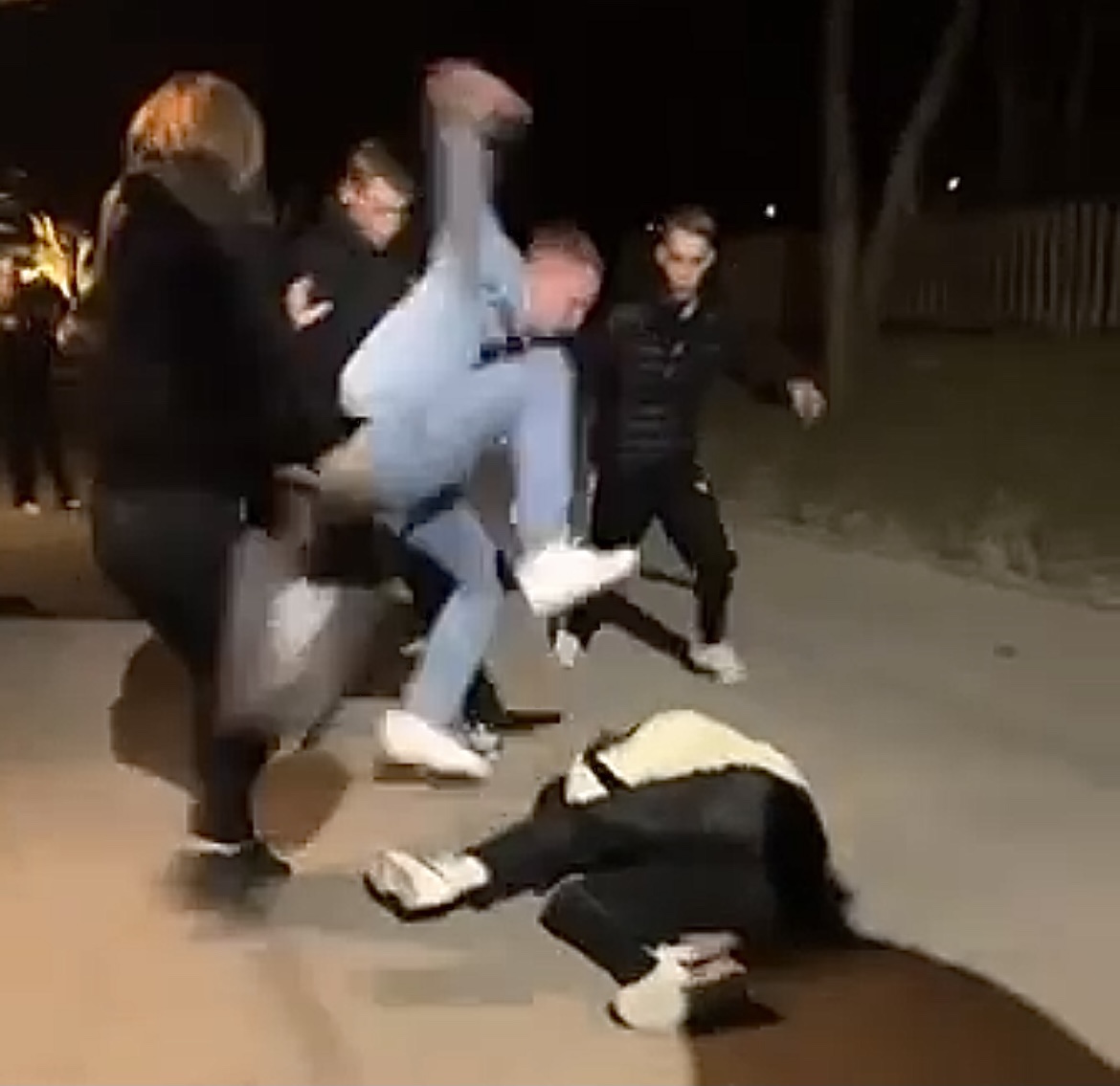 Den 17-årige Fagerstakillen blev påhoppad av flera personer. Liggande på marken blev han sparkad i huvudet minst tre gånger av en kille, medan en tjej skriker att han ska sluta och försöker handgripligen avbryta misshandeln, medan offret skyddar huvudet med sina armar.