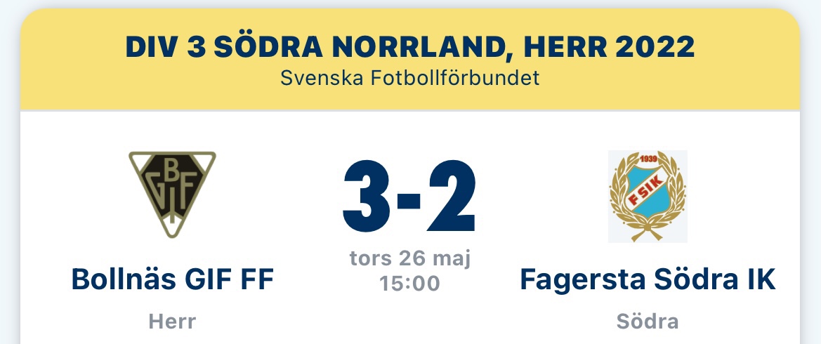 Fagersta Södra gjorde definitivt ingen dålig insats i torsdagens bortamatch mot Bollnäs GIF men hade inte turen på sin sida i avslutningen. Matchen slutade 3-2 (1-1).