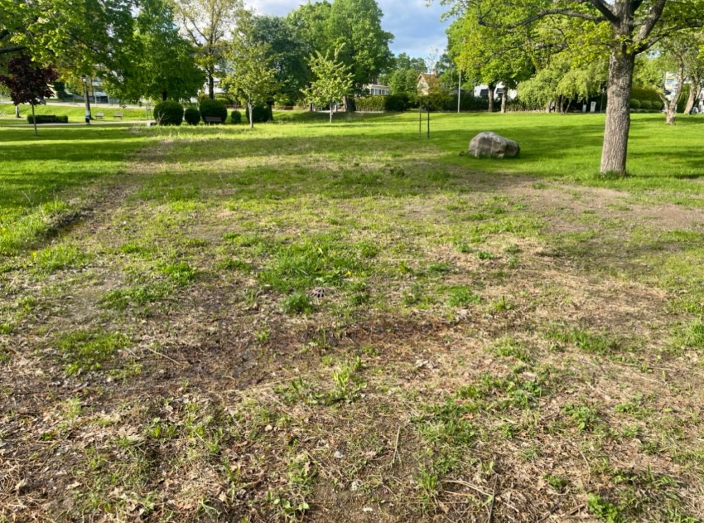 Istället bestämdes att en äng med blommor skulle anläggas dels för utseendet och dels för att gynna insektslivet, liksom på tre andra platser i staden. Men i fjol var det mest stora tistlar som växte där och nu är allt nedkapat till marken.