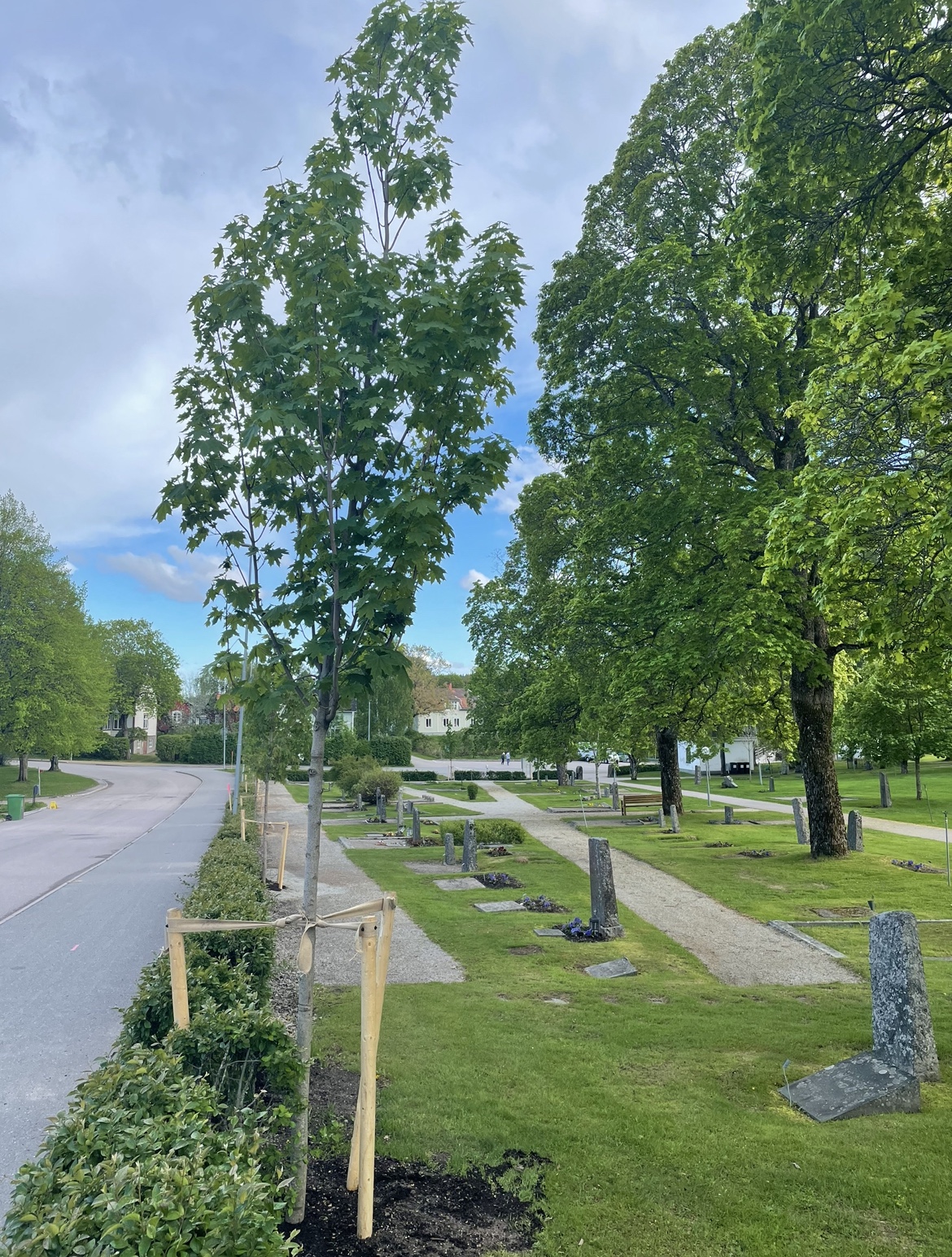 Många förvånades när samtliga stora träd på tomtgränsen till Kyrkvägen och Bergslagsvägen sågades ned och förändrade helhetsintrycket av området. Men nu har nya planterats.