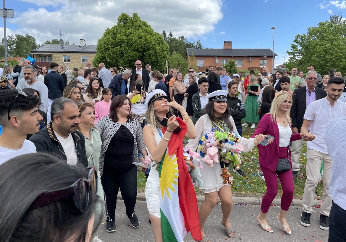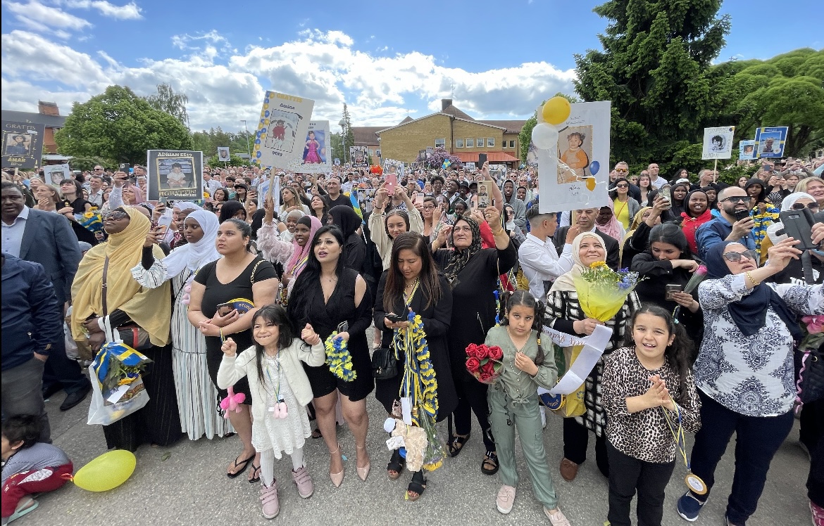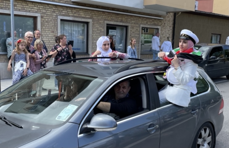 Det hade kommit hundratals släktingar från när och fjärran för att hylla och uppvakta Brinellskolans studenter på lördagen. Och många tog chansen att följa kortegen runt Vilhelminaparken.