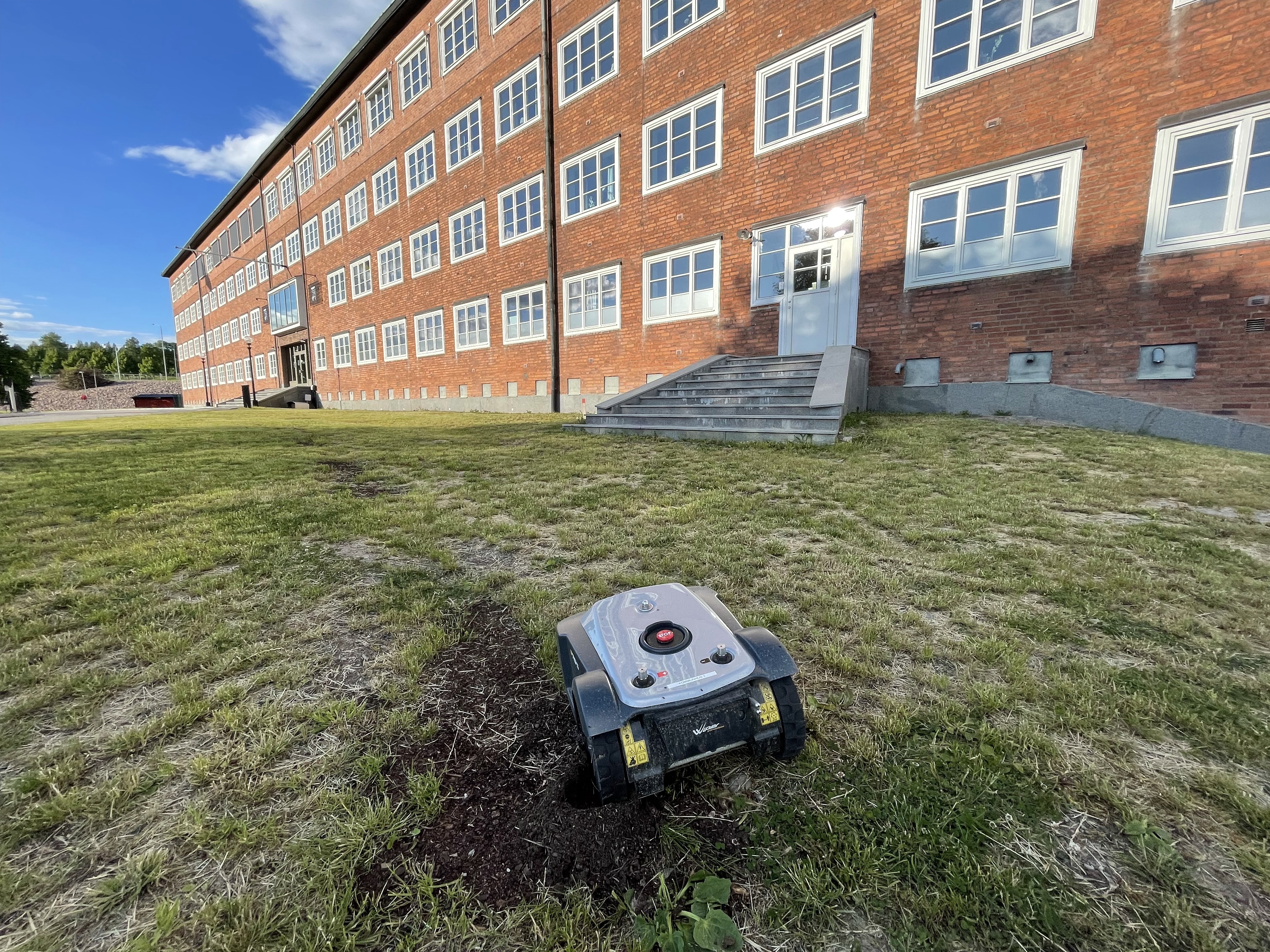 Gick förbi det nya kommunhuset i dag och vad fick jag se om inte de båda robotklipparna stå helt stilla ute på gräsmattan.