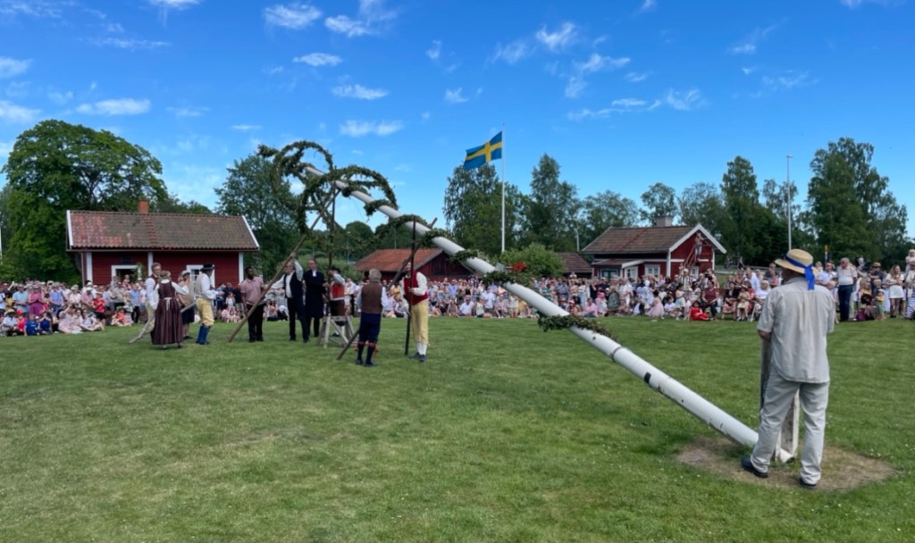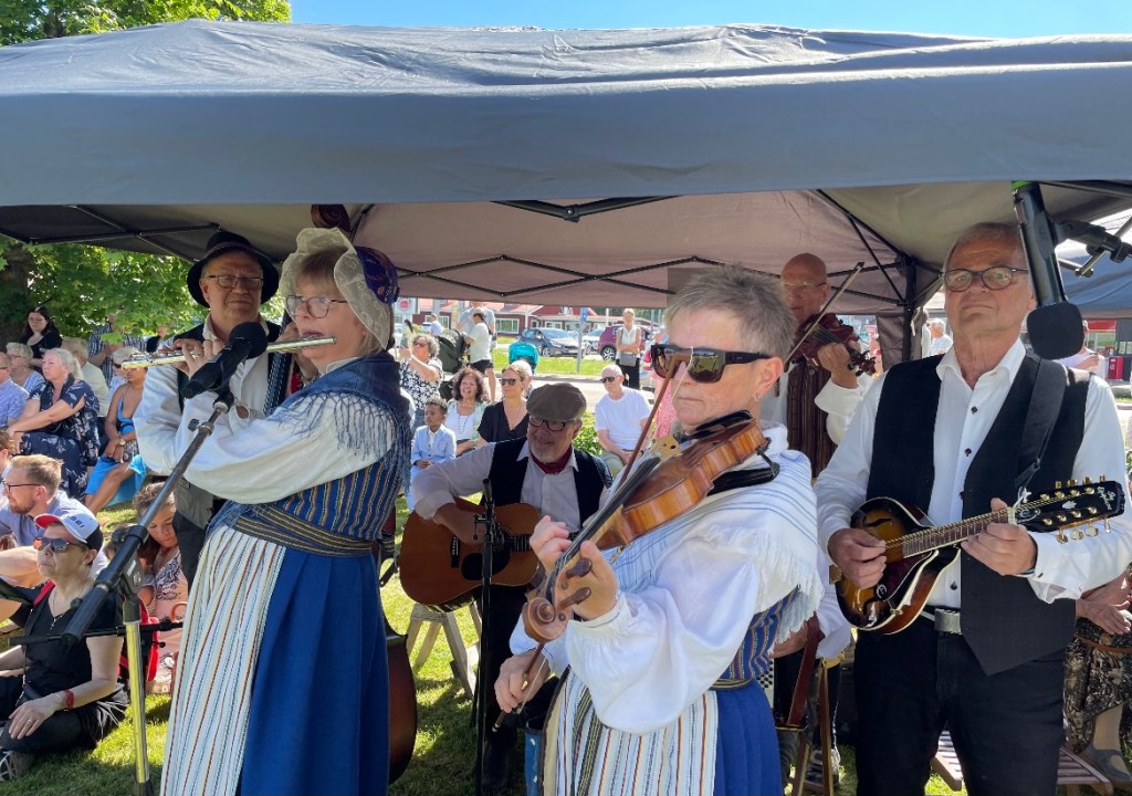 Prästen Lars Frisk höll ett fint välkomsttal till sommaren där han betonade värdet av människors olikheter och allas gemenskap. Efter att folkdansgillet uppträtt blev det dans kring stången till välljudande toner från Fagersta spelmanslag.