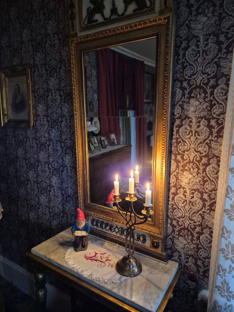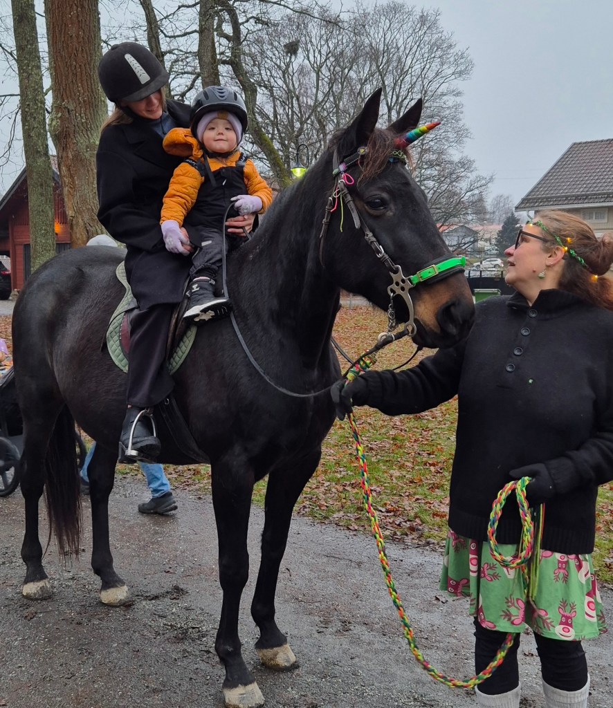 Många barnfamiljer uppskattar traditionen med danslekar runt granen. Tomtemor Kristina Forsgren ledde dansen. Innan dess fick alla som ville, klistra klart en julkaramell och hänga upp den. Efter dansen bjöd Norrby teater på en föreställning i Teatermuseet vid t tillfällen, fullsatt varje gång.