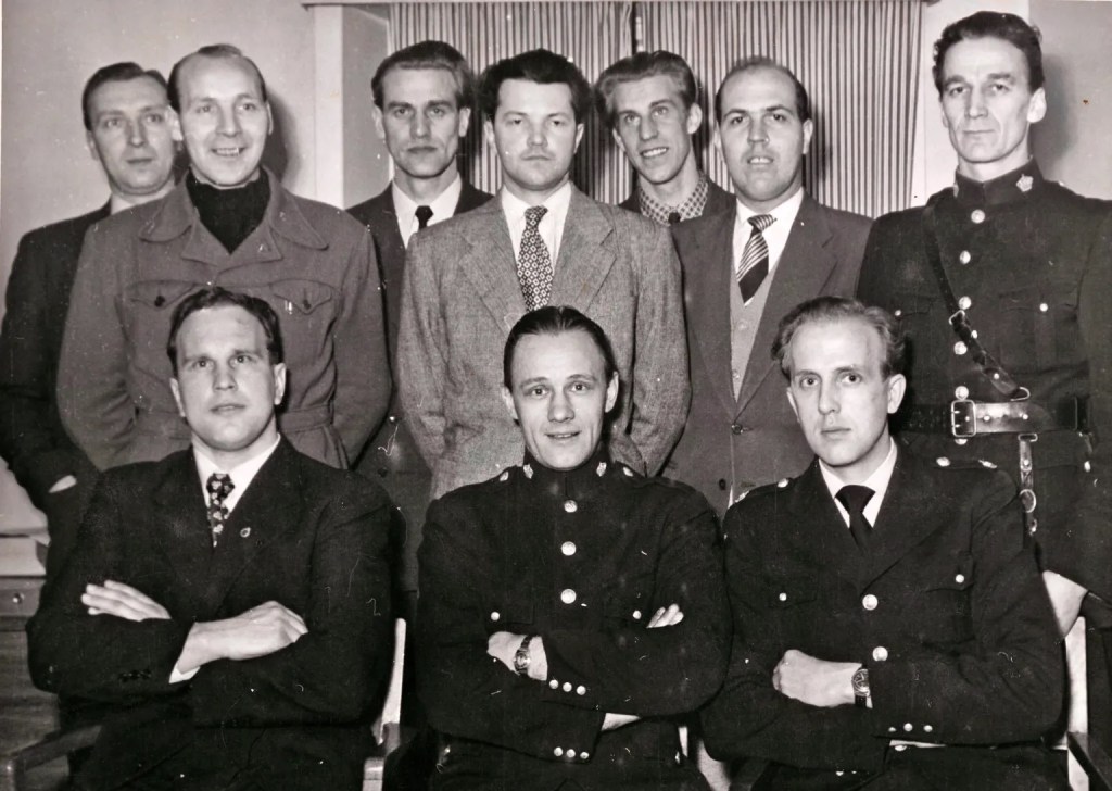 För drygt 70 år sedan berättade Expressen att Fagersta hade landets yngsta poliskår. Tredje man stående från vänster är Karl-Inge Björnbom, som senare blev stadens polismästare.